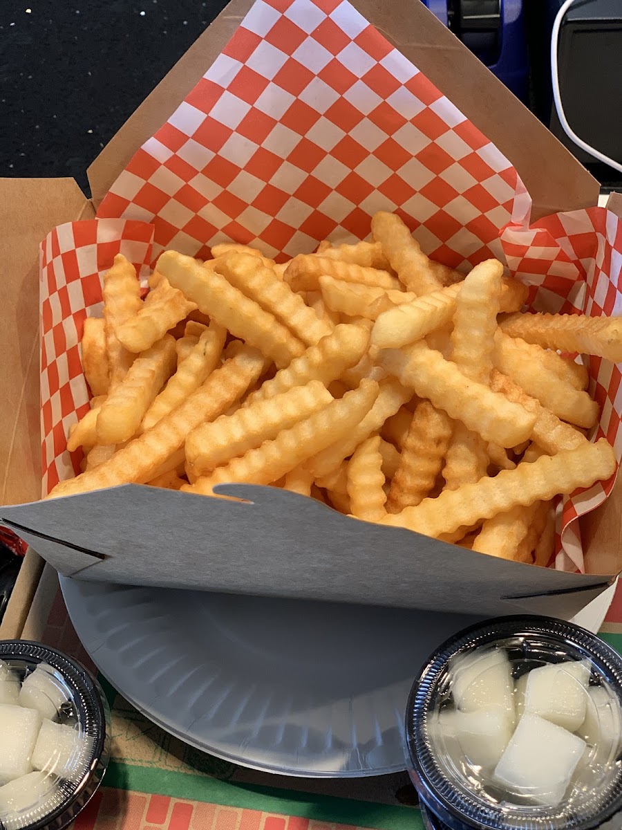 Double cheeseburger with side of crinkle cut fries
