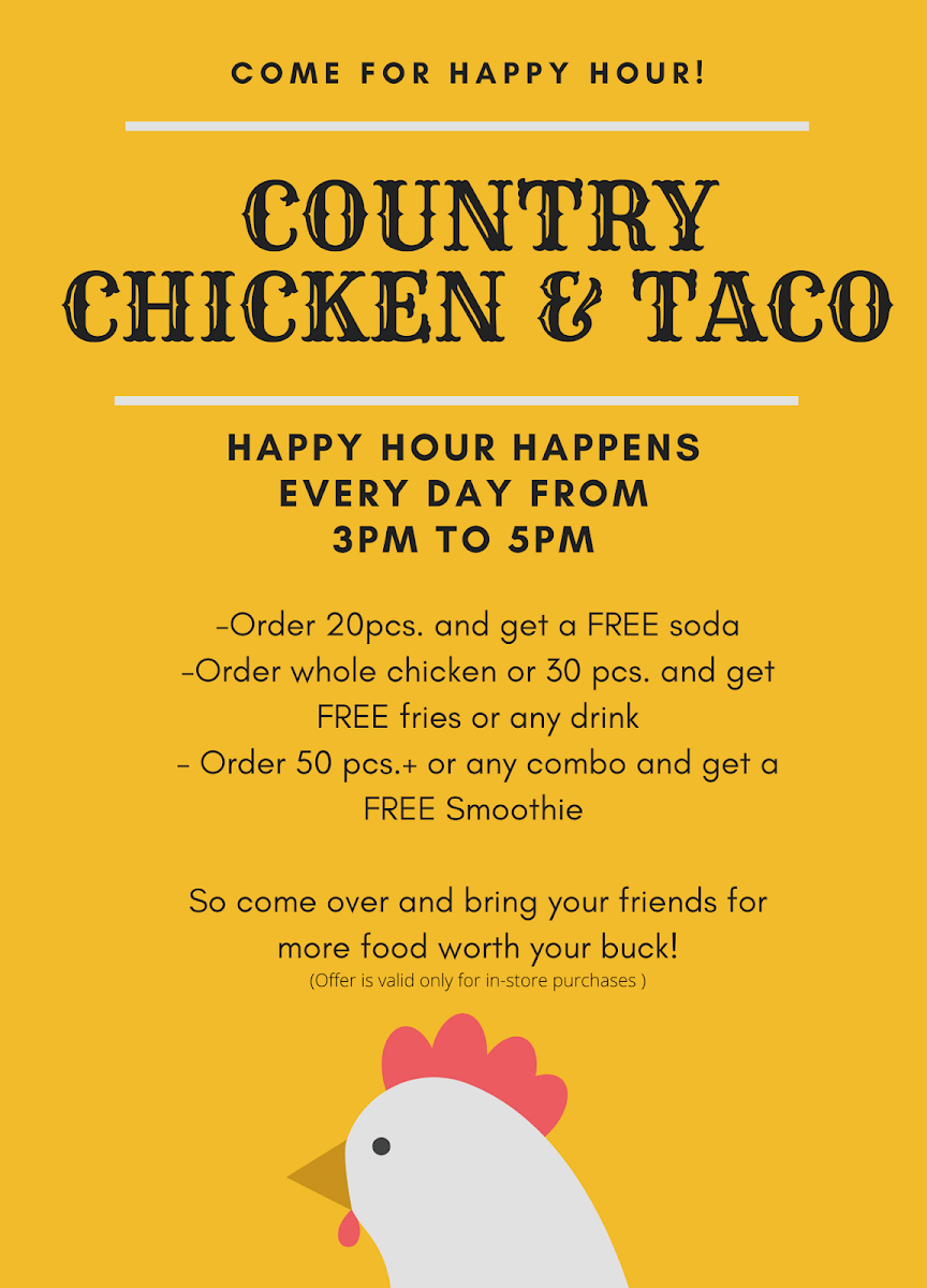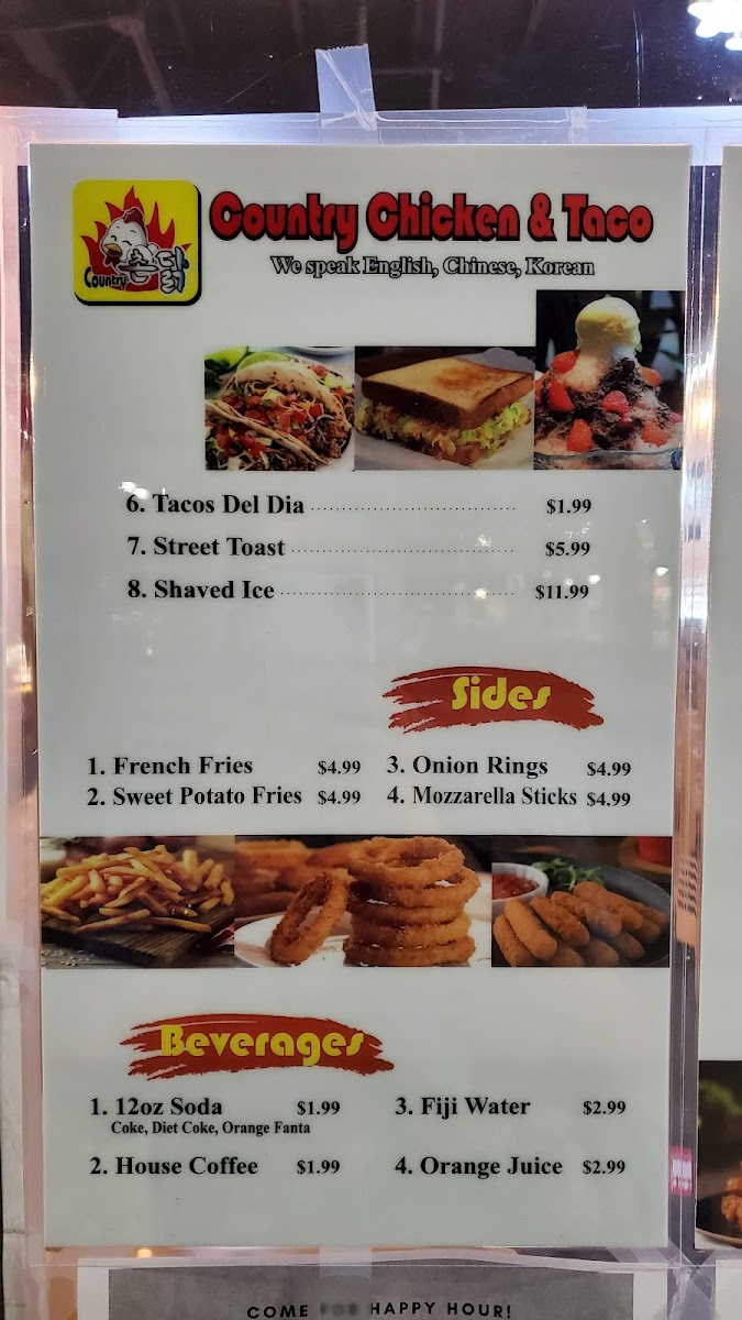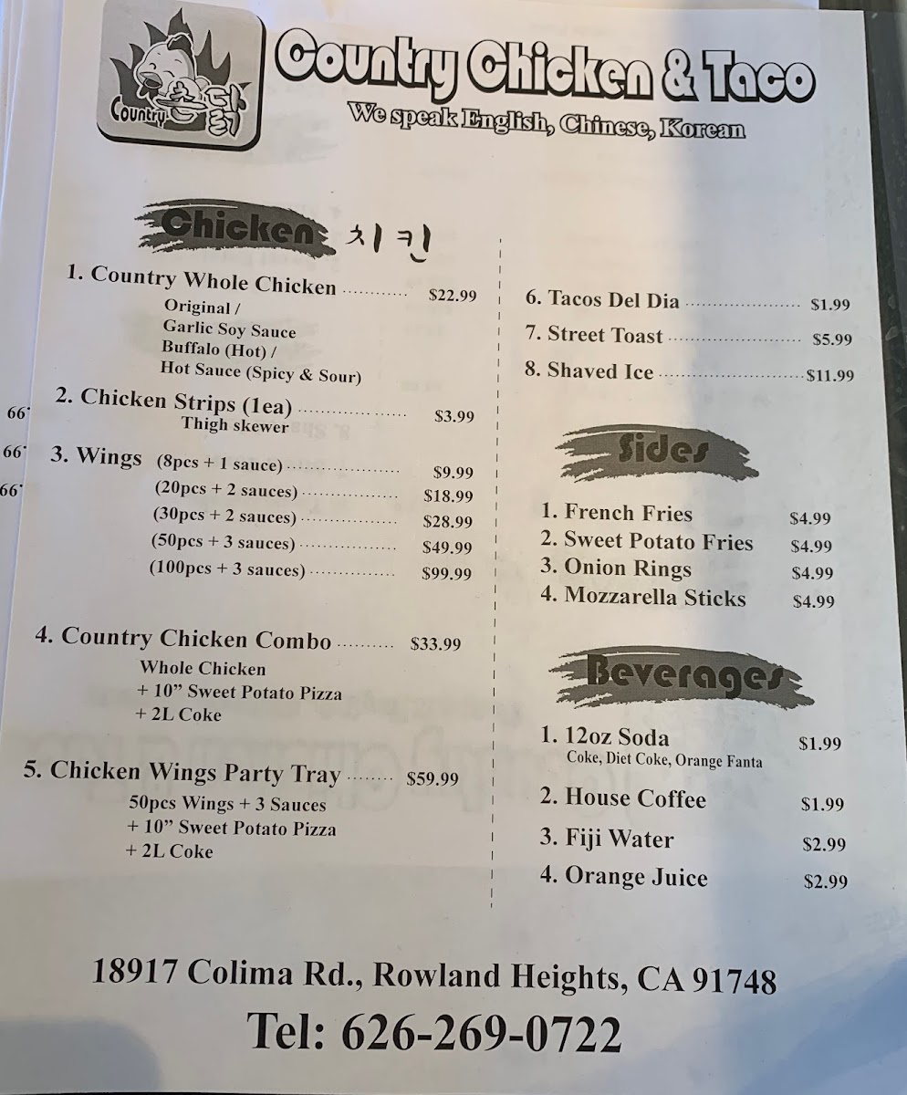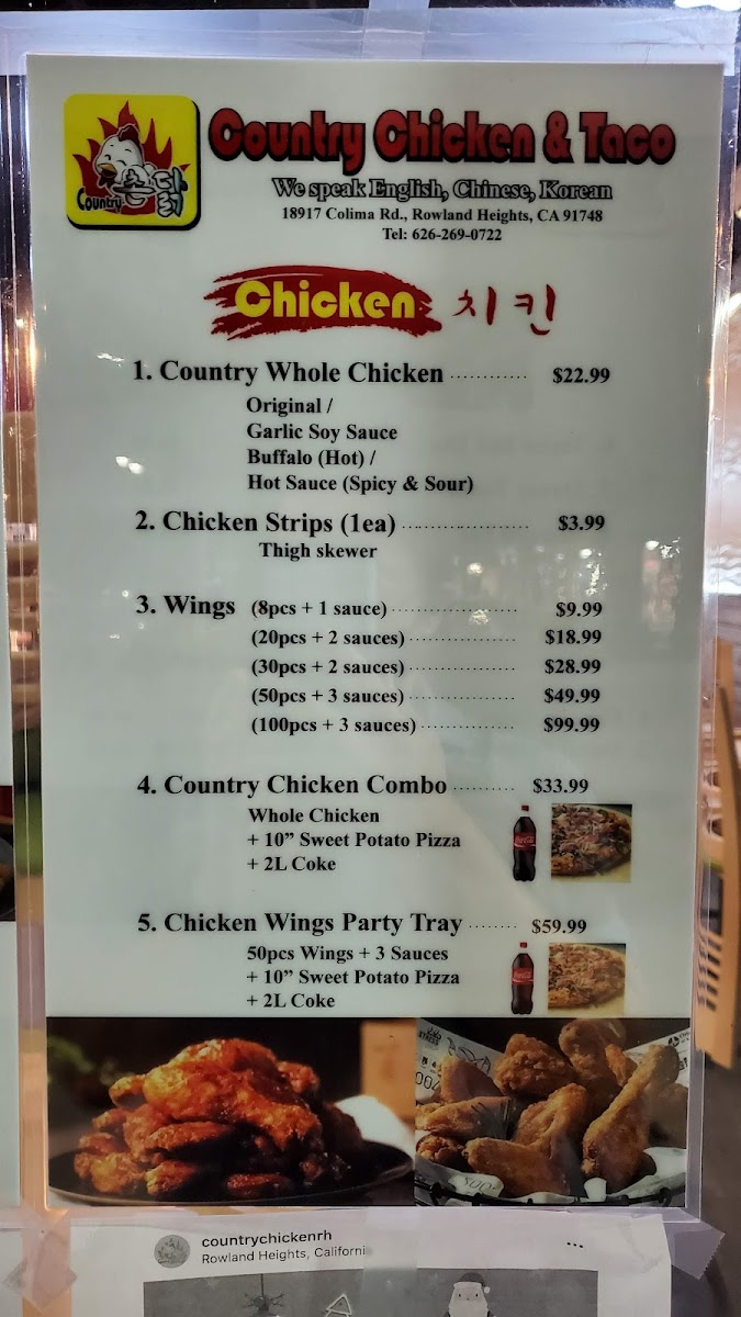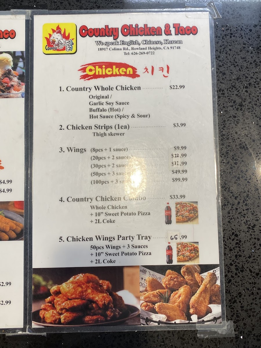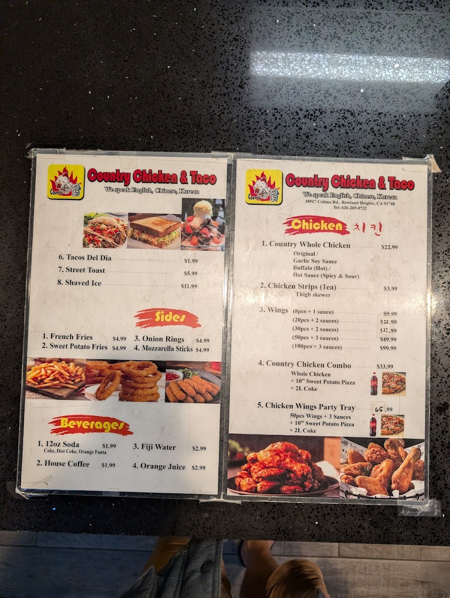 When you walk into Country Chicken & Taco Menu, you're greeted with the vibrant, mouthwatering aromas of freshly prepared dishes that bring a taste of comfort right to your table. Located in Rowland Heights, CA, this spot combines the best of crispy fried chicken and flavorful tacos, offering a menu that satisfies both hearty appetites and those craving something quick and delicious. Whether you're in the mood for a juicy, golden chicken tenders plate or a zesty taco bursting with toppings, there’s something here for everyone. With a focus on bold flavors and high-quality ingredients, each dish is made to offer a delightful experience from the first bite to the last. It's the perfect place to enjoy a satisfying meal with friends or family, where the food and the atmosphere are always inviting.